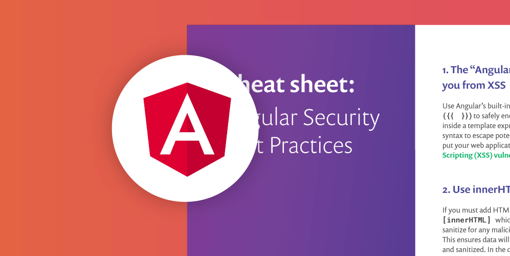 0 mins readPreviously, we have shared our AngularJS Security Fundamentals cheatsheet. This time around, we dive straight into the modern Angular security best practices. You can download the Angular Security Best Practices cheat sheet here.